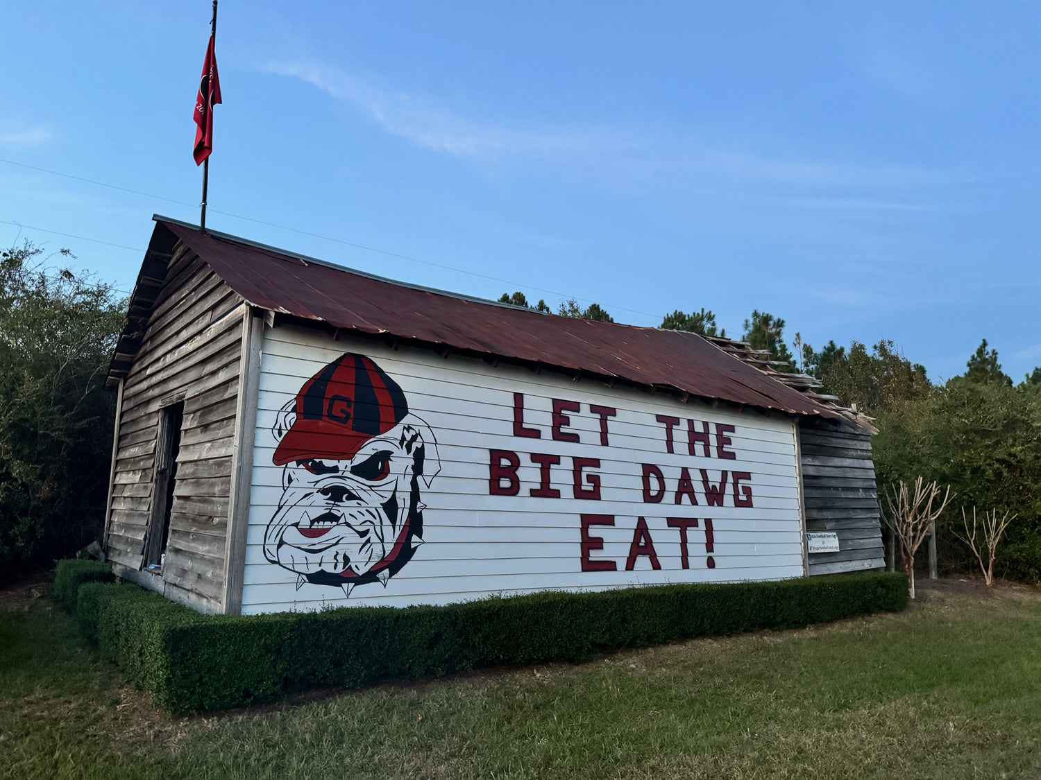 The “UGA Football Barn Sign” located on Highway 15 between Tennille and Wrightsville, GA. These two small towns have produced many successful football players for UGA, most notably Hershel Walker. Please visit our Facebook page: https://www.facebook.com/ugafootballbarnsign